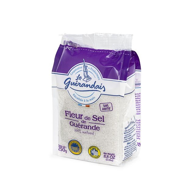 Die Marke Le Guérandais verkörpert Leidenschaft für ein altes Handwerk in den natürlichen Salzgärten von Guérande in der Bretagne Frankreichs. Auf über 2000 Hektaren, verteilt auf neun Gemeinden, entsteht mit Unterstützung von Wind und Sonne ein erlesenes Fleur de Sel. Es wird in den Sommermonaten ohne maschinelle Unterstützung täglich geerntet.
